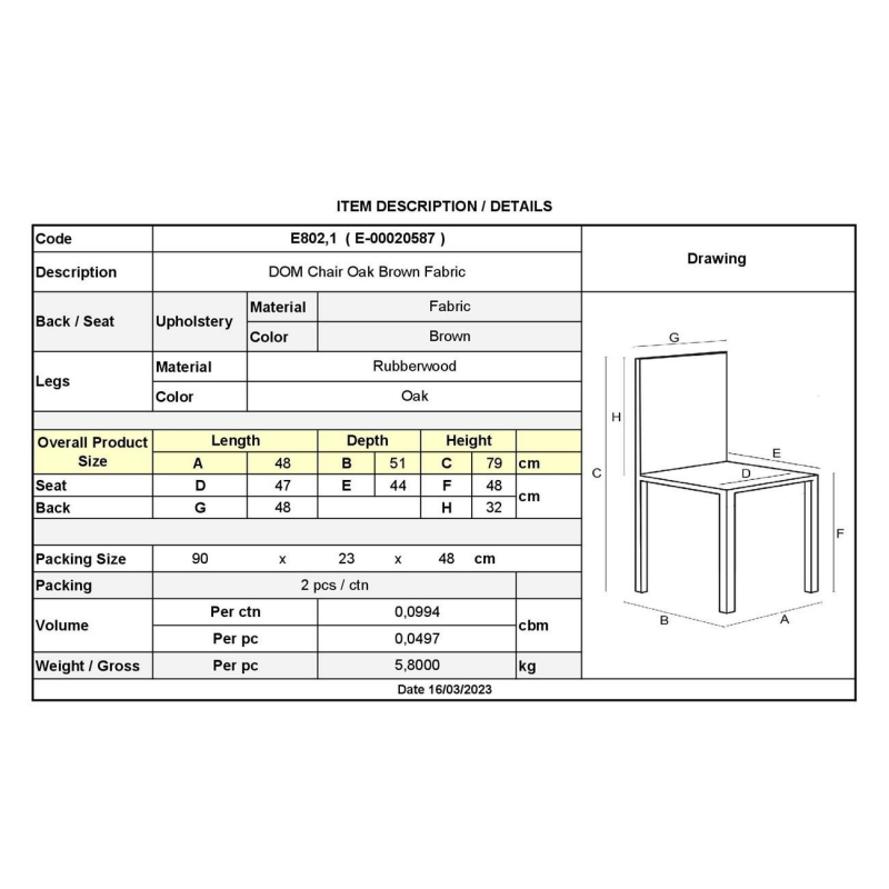DOM Καρέκλα Τραπεζαρίας Απόχρωση Oak, Ύφασμα Καφέ 48x51x79cm