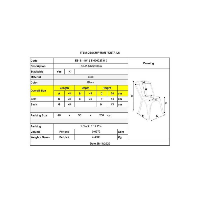 Ε5191,1W RELIX Καρέκλα Μέταλλο Μαύρο