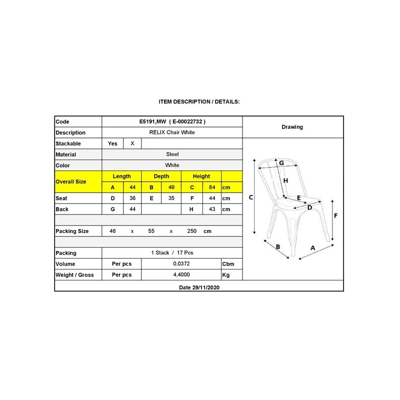 Ε5191,MW RELIX Καρέκλα Μέταλλο Άσπρο