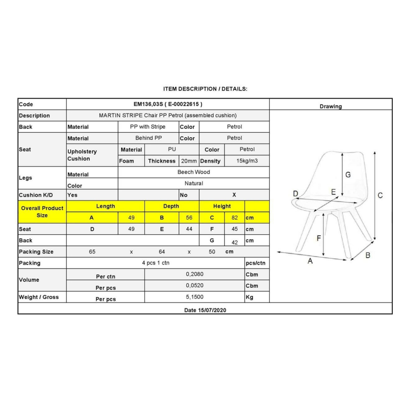 ΕΜ136,03S MARTIN STRIPE Καρέκλα PP Petrol (Ξύλινο πόδι-Μοντ/νη ταπετσαρία)