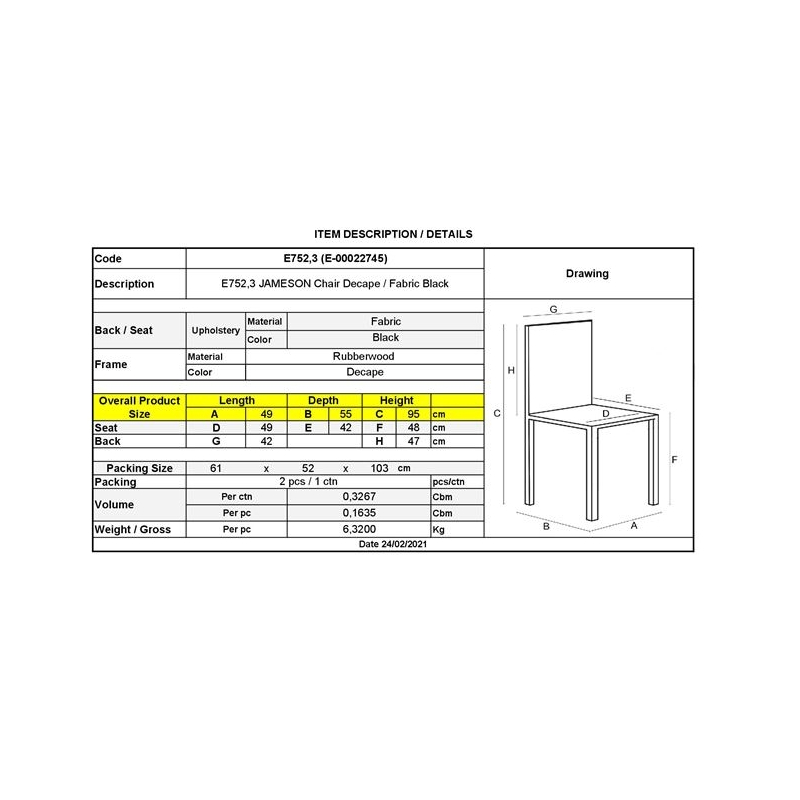 Ε752,3 JAMESON Καρέκλα Decape/Ύφασμα Μαύρο