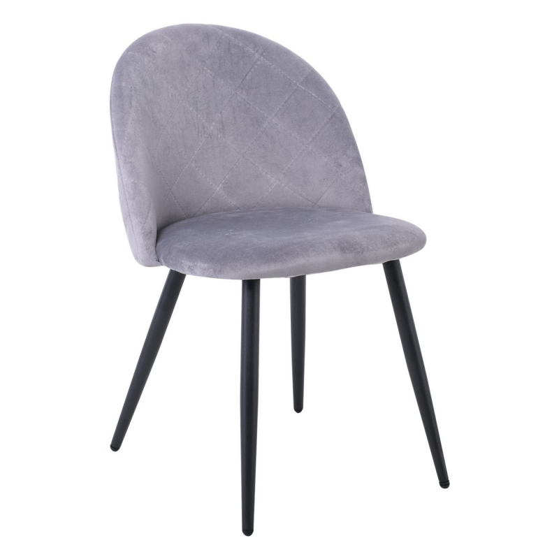 BELLA Καρέκλα Τραπεζαρίας, Μέταλλο Βαφή Μαύρο, Ύφασμα Velure Απόχρωση Γκρι 50x56x80cm