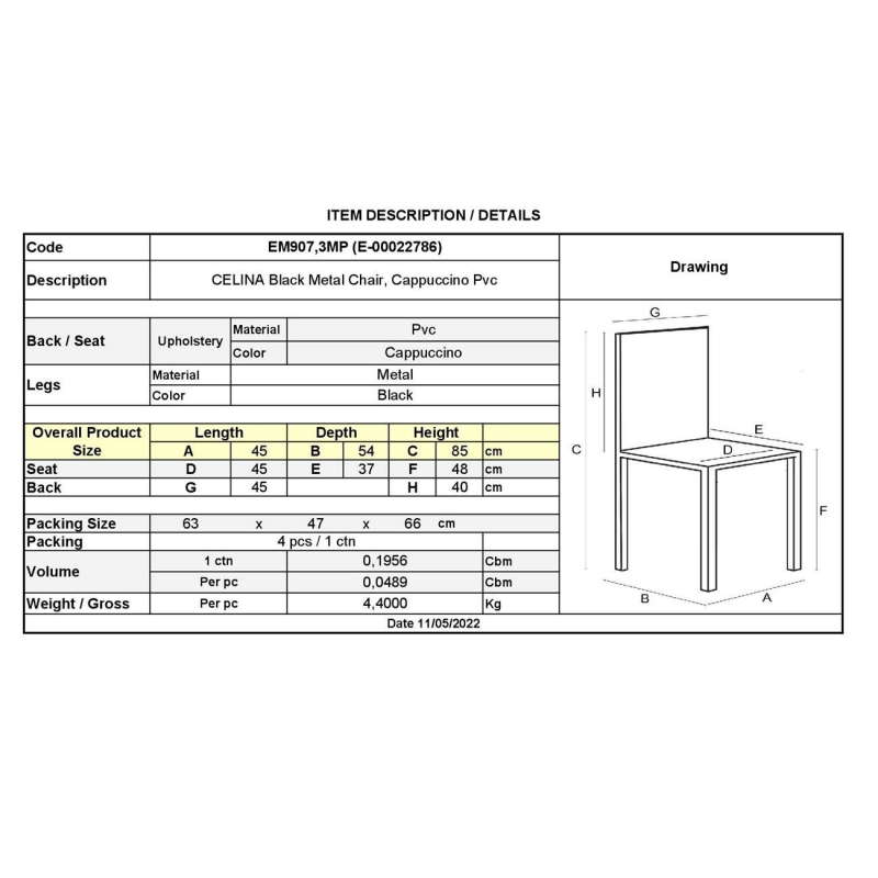 01.ΕΜ966Χ,8Κ JETTA Καρέκλα Τραπεζαρίας - Μέταλλο Χρώμιο, Ύφασμα Velure Γκρι, Full K/D - Συσκ.4 40x50x95cm 21,93 €