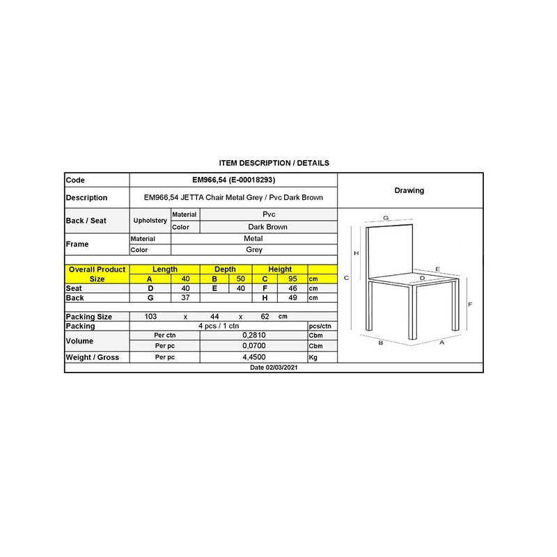 ΕΜ966,54 - JETTA Καρέκλα Pvc Σκούρο Καφέ / Βαφή Γκρι (Συσκ.4)