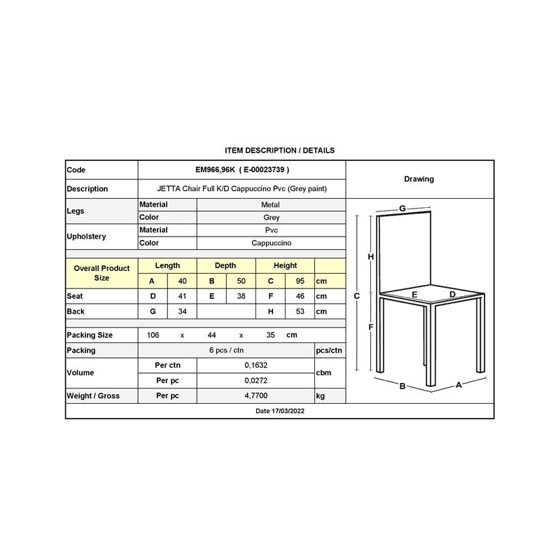 ΕΜ966,96Κ JETTA Καρέκλα Full K/D Pvc Cappuccino/Βαφή Γκρι (Συσκ.6)