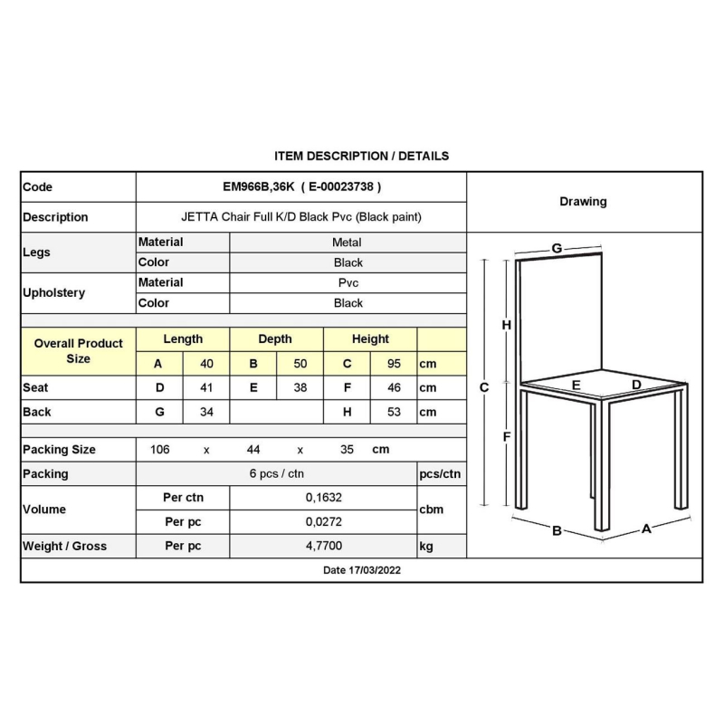 ΕΜ966Β,36Κ JETTA Καρέκλα Full K/D Pvc Μαύρο/Βαφή Μαύρo (Συσκ.6)