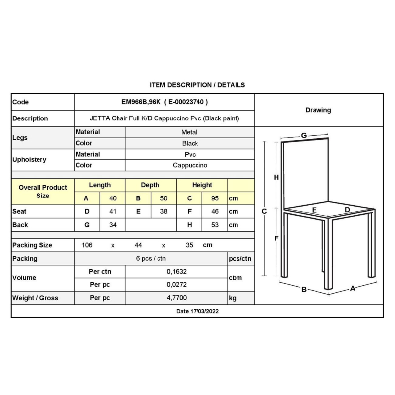 ΕΜ966Β,96Κ JETTA Καρέκλα Full K/D Pvc Cappuccino/Βαφή Μαύρο (Συσκ.6)