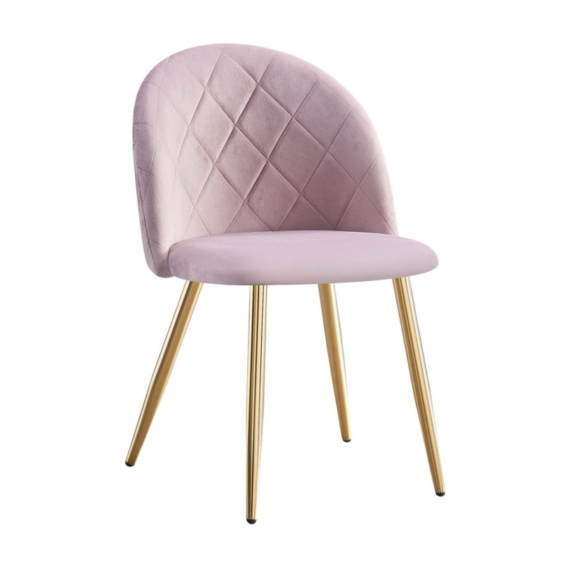 BELLA Καρέκλα Τραπεζαρίας, Μέταλλο Χρώμιο Χρυσό, Ύφασμα Velure Απόχρωση Dirty Pink 50x56x80cm