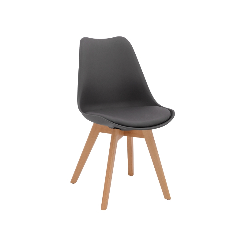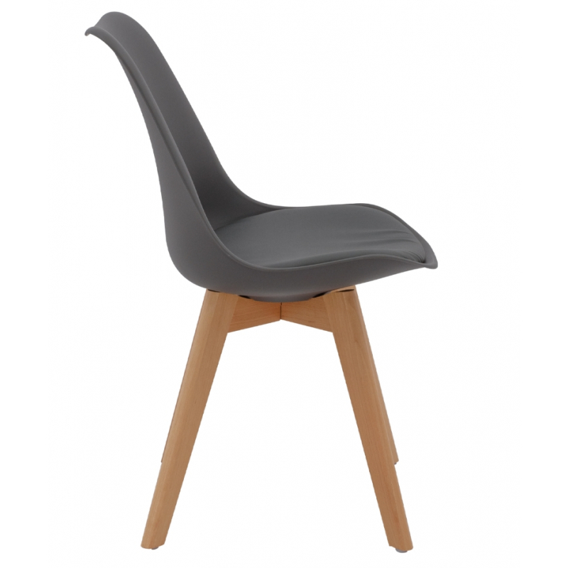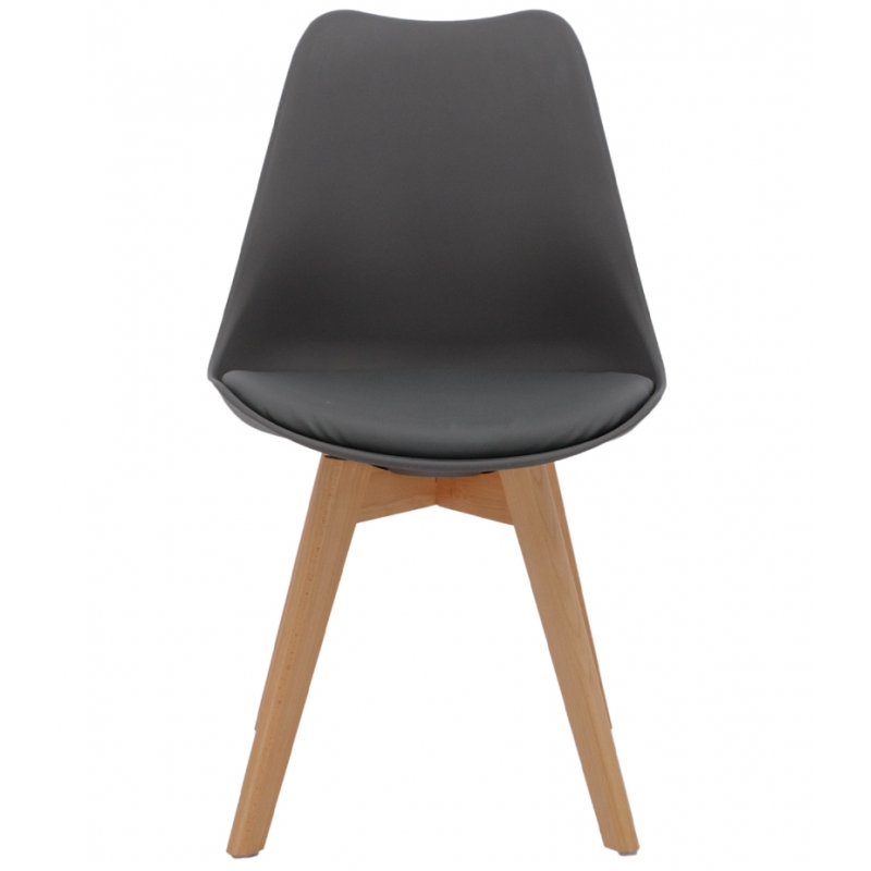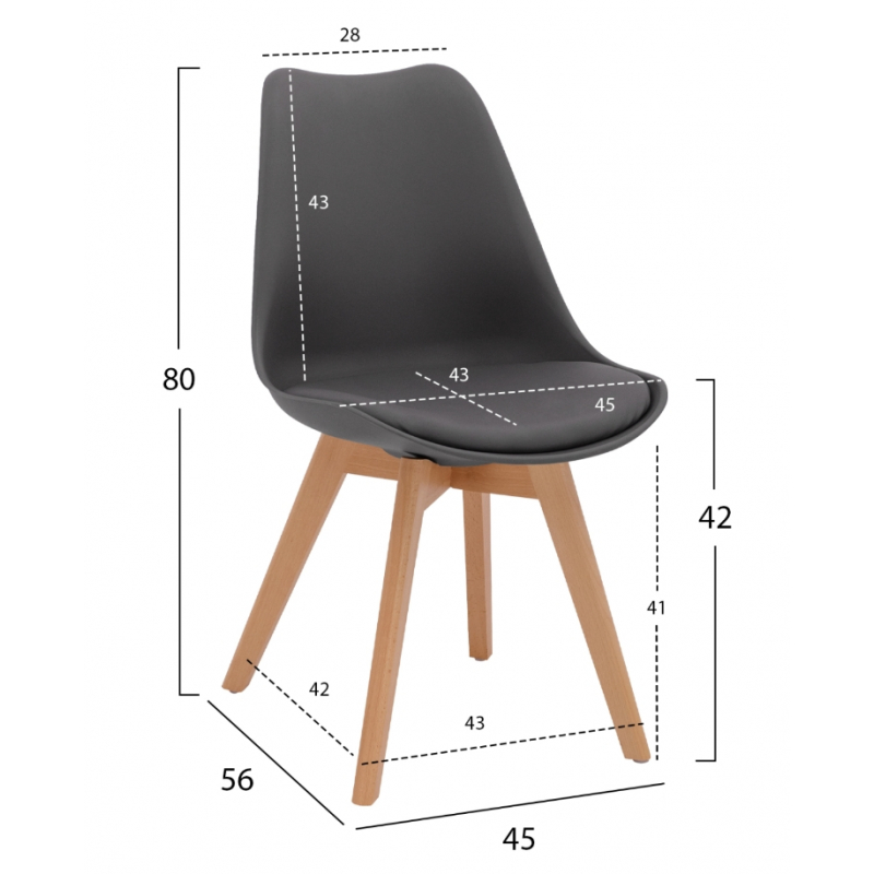Μία μοντέρνα καρέκλα σε έναν άψογο συνδυασμό ξύλου-πολυπροπυλενίου-τεχνοδέρματος για να αναδείξει κάθε γωνία του σπιτιού σας ή του επαγγελματικού σας χώρου. Το κάθισμα της καρέκλας και ο σκελετός είναι μονοκόμματα και καθιστούν την καρέκλα μεγάλης αντοχής. Σκελετός & πόδια: Μασίφ ξύλο οξιάς σε φυσικό χρώμα. Κάθισμα: Υψηλής ποιότητας πολυπροπυλένιο με δερμάτινο PU μαξιλαράκι σε σκούρο γκρι χρώμα. Διαστάσεις: 45x56x80 εκ. Διάσταση καθίσματος: 45x43 εκ. Ύψος καθίσματος: 42 εκ. Ύψος πλάτης: 43 εκ. Απόσταση ποδιών: 43x42 εκ. Ύψος ποδιών: 41 εκ. ΠΡΟΣΟΧΗ: Το προϊόν διατίθεται αμοντάριστο σε πακέτο των τεσσάρων τεμαχίων και πωλείται ανά 4 τμχ.