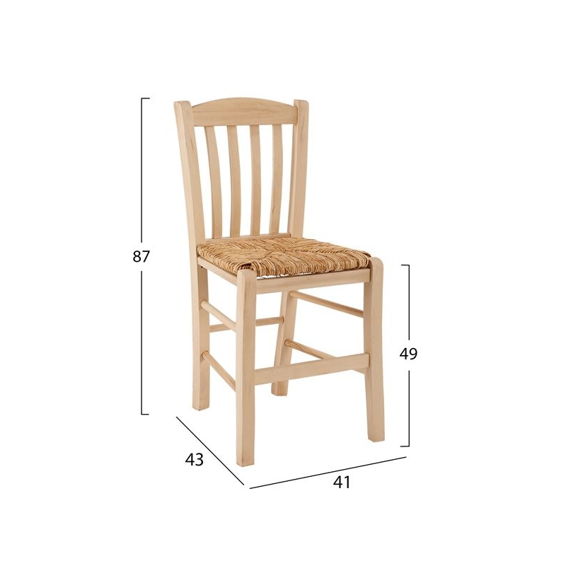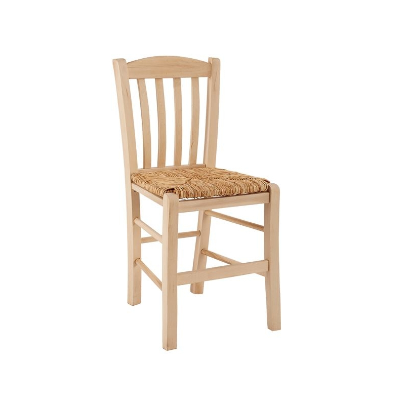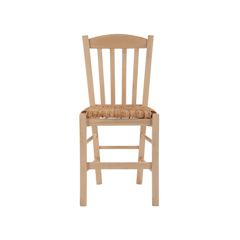 Καρέκλα καφενείου από μασίφ ξύλο φουρνιστής οξιάς άβαφο και ψάθα. Κατάλληλο για ταβέρνα, καφενείο, αλλά και γενικότερα για χώρους διακοσμημένους με το κλασικό Ελληνικό παραδοσιακό ύφος. Πολύ γερός και ανθεκτικός σκελετός, κατασκευασμένος από 100% μασίφ ξύλο οξιάς. Διαστάσεις: 41x35x89 εκ. Ύψος καθίσματος: 48 εκ. Η καρέκλα HM10376.02 είναι δεμένη με σύρμα για μεγαλύτερη αντοχή και ανθεκτικότητα στο πέρασμα του χρόνου.