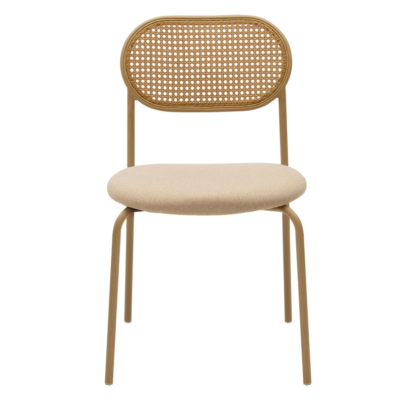 Καρέκλα James pakoworld στοιβαζόμενη pe rattan ύφασμα μπεζ-μέταλλο φυσικό