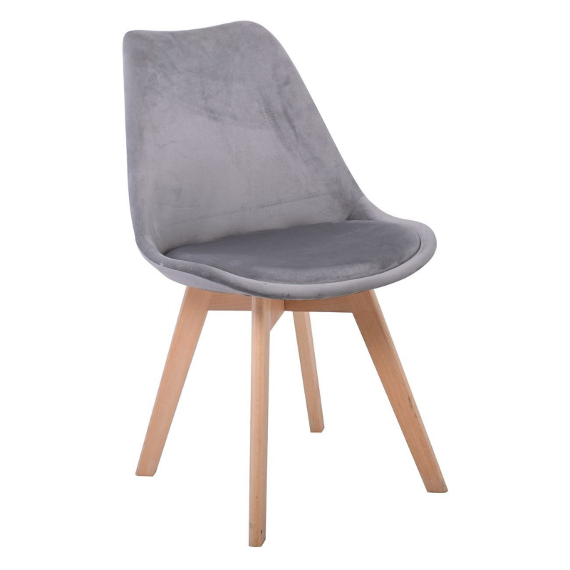 MARTIN Καρέκλα Οξιά Φυσικό, Ύφασμα Velure Σκούρο Γκρι, Μονταρισμένη Ταπετσαρία 49x57x82cm