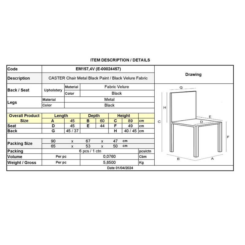 ΕΜ157,4V CASTER Καρέκλα Μεταλλική Βαφή Μαύρο/Ύφ.Μαύρο Velure