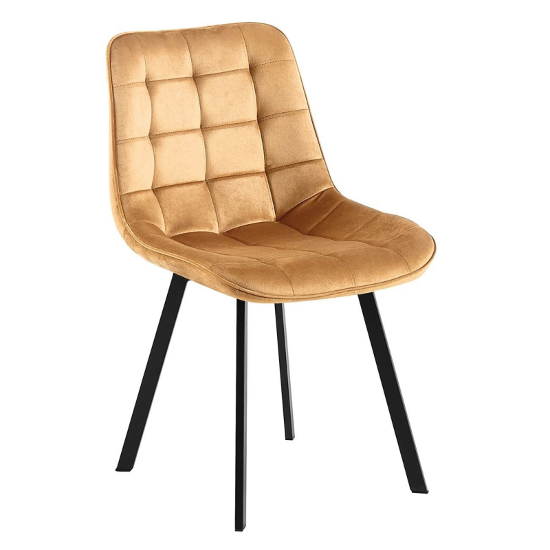 MYRIAM Καρέκλα Τραπεζαρίας, Μέταλλο Βαφή Μαύρο, Ύφασμα Velure Camel ( Συσκ.6 ) 50x56x83cm