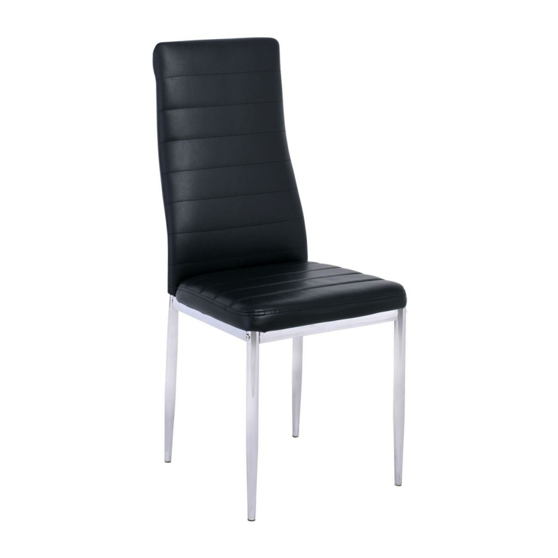 JETTA Καρέκλα Τραπεζαρίας - Κουζίνας, Μέταλλο Χρώμιο, Pvc Μαύρο, Full K/D - Συσκ.4 40x50x95cm