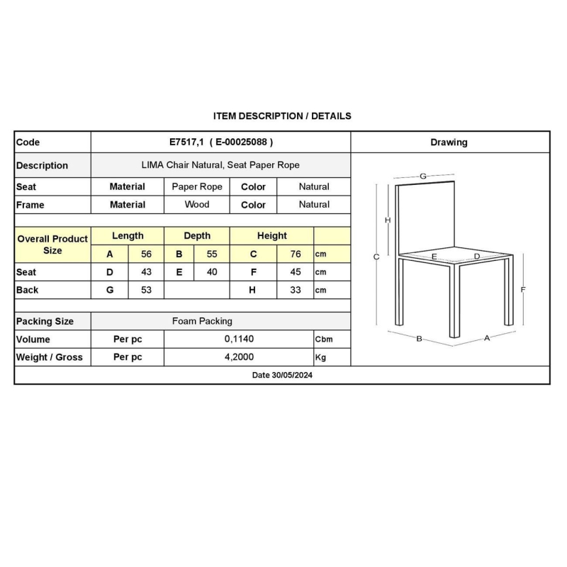 Ε7517,1 LIMA Καρέκλα Φυσικό, Κάθισμα Paper Rope Φυσικό