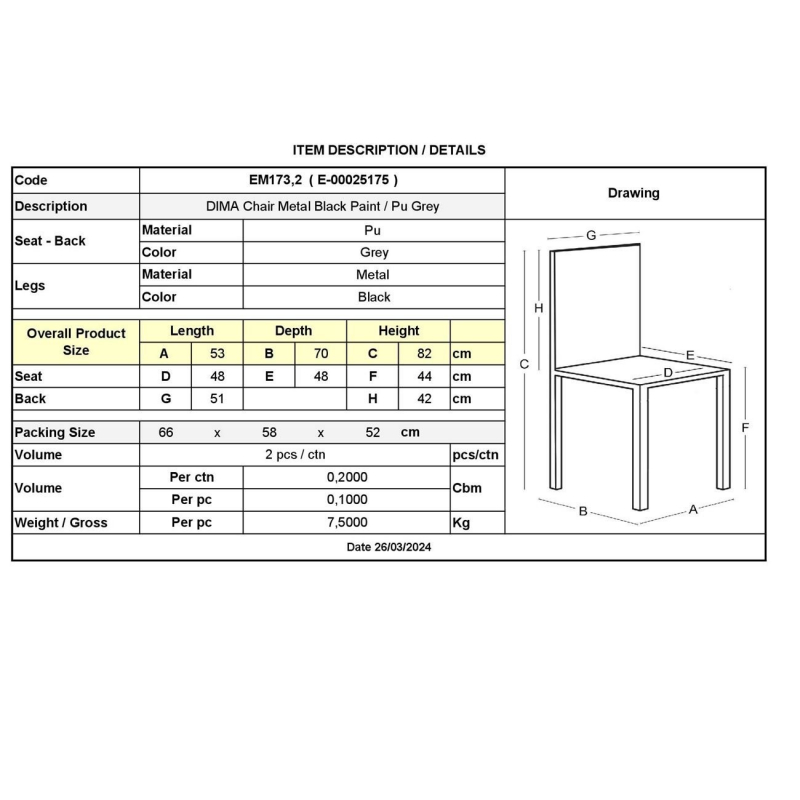 ΕΜ173,2 DIMA Καρέκλα Μεταλλική Βαφή Μαύρο/Pu Γκρι