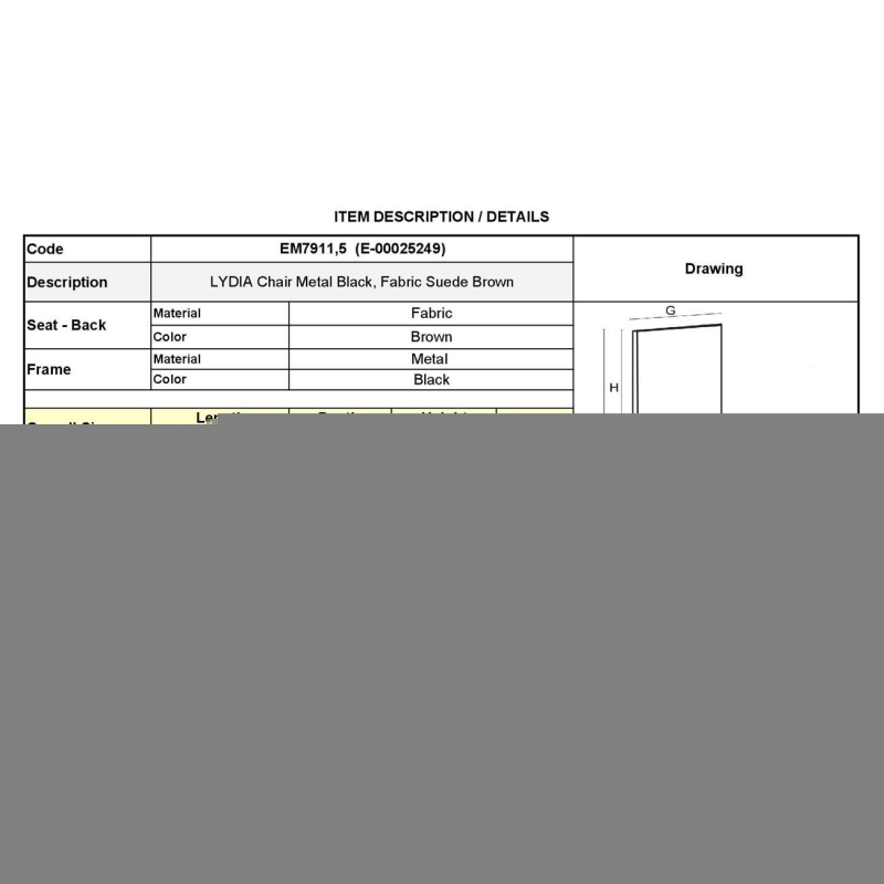 ΕΜ7911,5 LYDIA Καρέκλα Μέταλ.Μαύρο/Ύφασμα Suede Καφέ