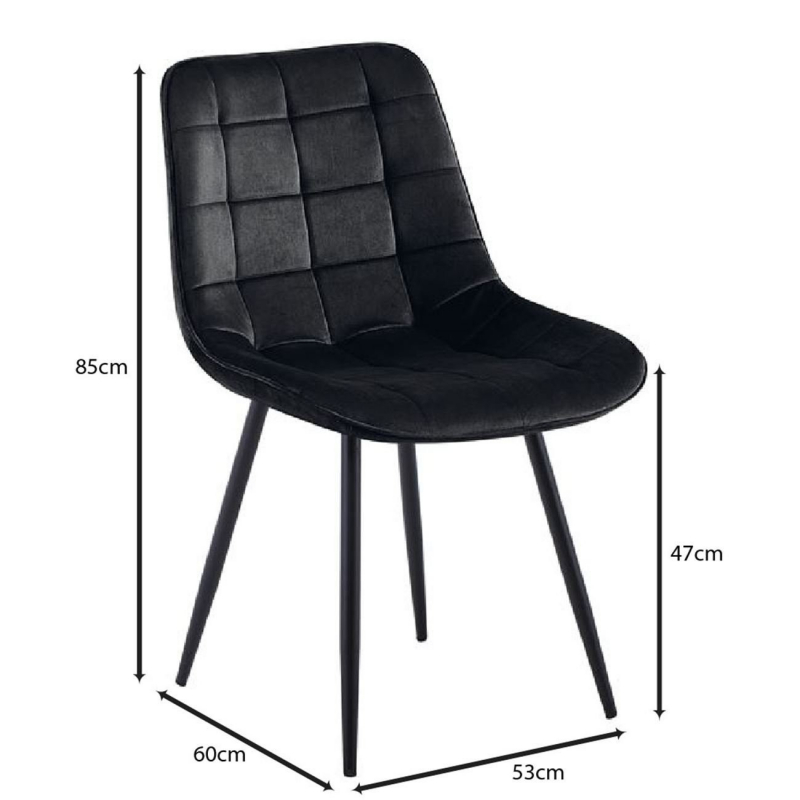 MYRIAM-R Καρέκλα Τραπεζαρίας, Μέταλλο Βαφή Μαύρο, Ύφασμα Velure Μαύρο ( Συσκ.4 ) 53x60x85cm