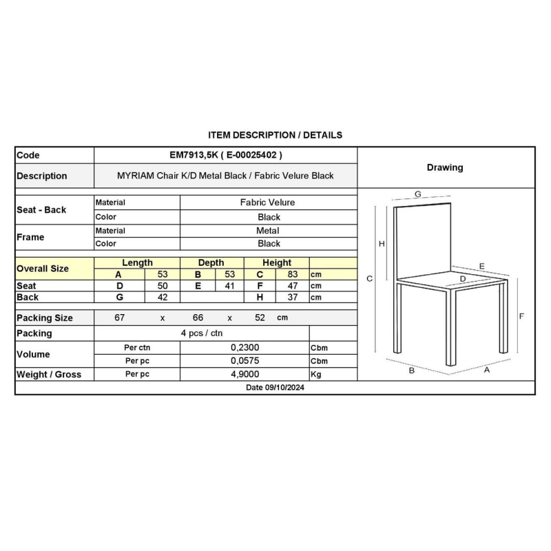 ΕΜ7913,5Κ MYRIAM Καρέκλα K/D Μέταλ.Μαύρο/Ύφασμα Velure Μαύρο (Συσκ.4)