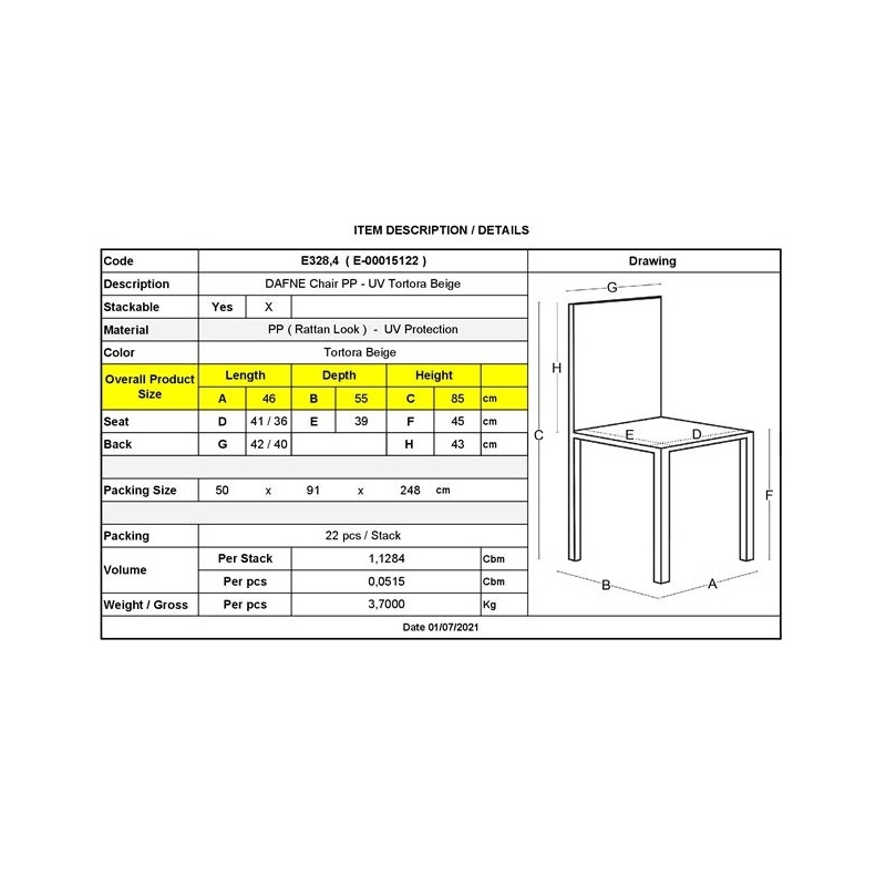 Ε328,4 DAFNE Καρέκλα PP-UV Tortora (Rattan Look) Στοιβαζόμενη