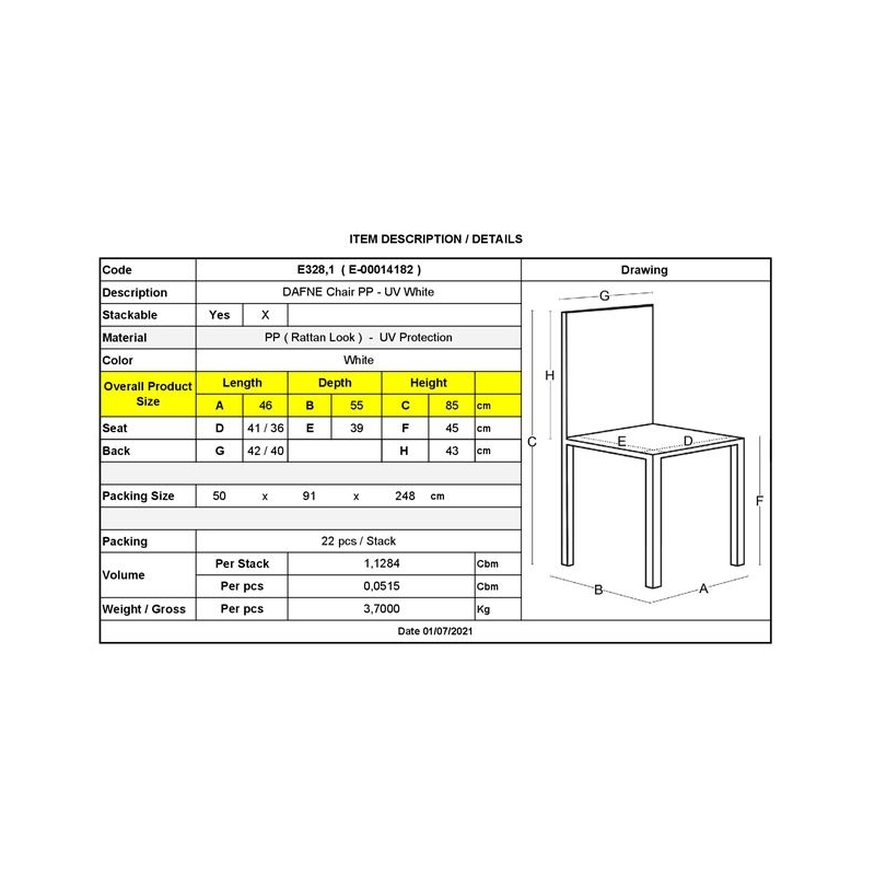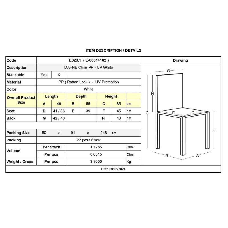Ε328,1 DAFNE Καρέκλα PP-UV Άσπρο (Rattan Look) Στοιβαζόμενη