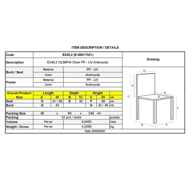 Ε345,2 OLIMPIA Καρέκλα PP-UV Ανθρακί Στοιβαζόμενη