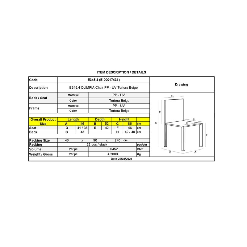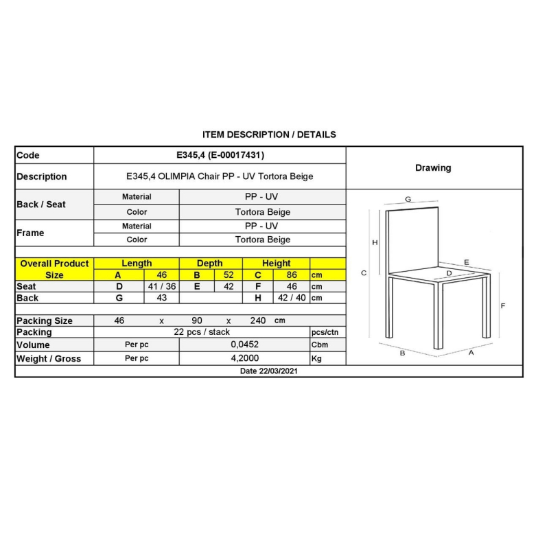 Ε345,4 OLIMPIA Καρέκλα PP-UV Tortora Στοιβαζόμενη