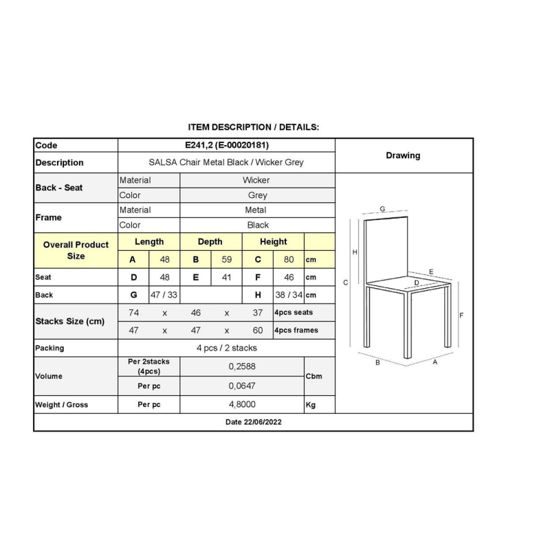 Ε241,2 SALSA Καρέκλα Μεταλ.Μαύρο/Wicker Γκρι