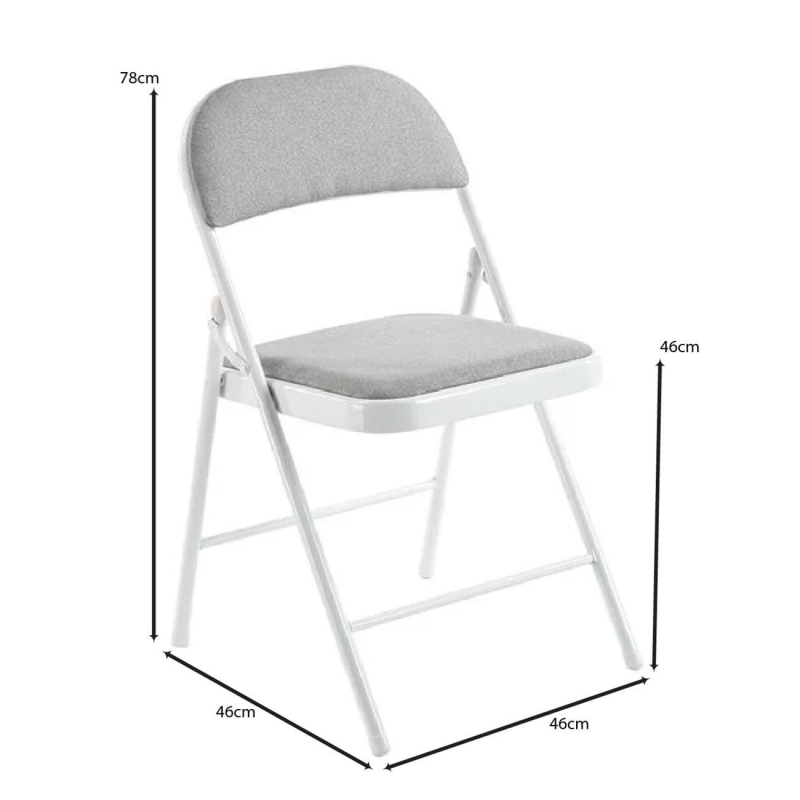 BRENDA Καρέκλα Πτυσσόμενη, Μέταλλο Βαφή Άσπρο, Ύφασμα Γκρι 46x46x78cm