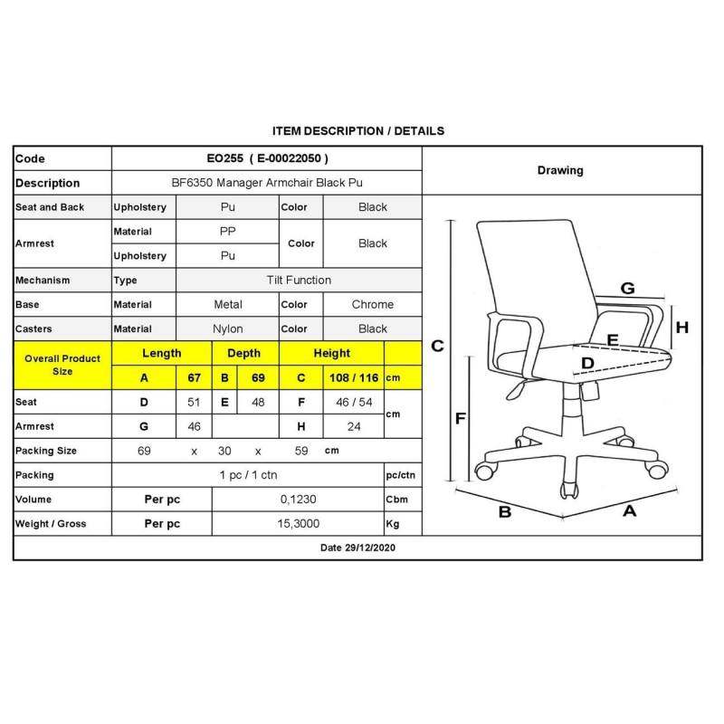 BF6350 Πολυθρόνα Γραφείου Διευθυντή