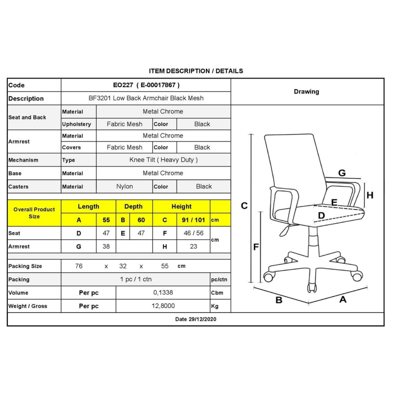 ΕΟ227 - BF3201 Πολυθρόνα Χαμ.Πλάτη Μαύρο Mesh