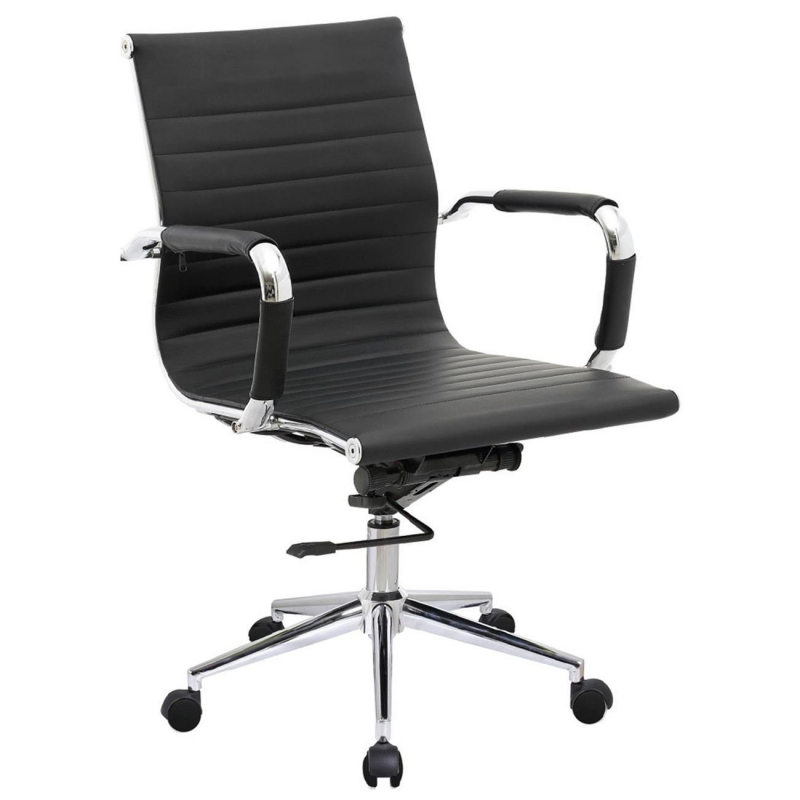 BF3301 Πολυθρόνα Γραφείου Μέταλλο Βάση Χρώμιο, PU Μαύρο