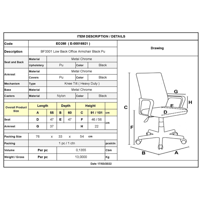 ΕΟ268 BF3301 Πολυθρόνα Χαμ.Πλάτη Μαύρο