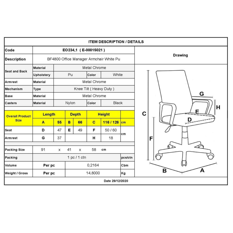 ΕΟ234,1 - BF4800 Πολυθρόνα Διευθ.PU Άσπρο