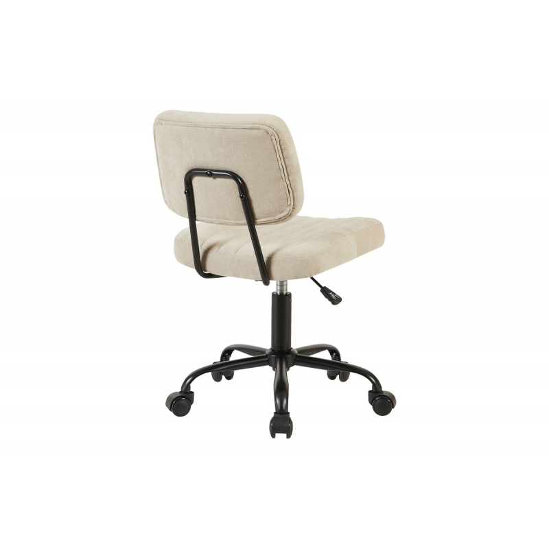 Μοντέρνα Υφασμάτινη Καρέκλα Γραφείου Warra- Στιλ και Άνεση για τον Χώρο Σας Δημιουργήστε ένα λειτουργικό και φιλόξενο περιβάλλον εργασίας με τη μοντέρνα καρέκλα γραφείου Warra. Ο μίνιμαλ σχεδιασμός της συνδυάζεται άψογα με το ζεστό, γήινο χρώμα που προσθέτει μια νότα ζεστασιάς και στιλ σε κάθε χώρο, είτε πρόκειται για γραφείο είτε για το δωμάτιο ενός εφήβου. Τεχνικά χαρακτηριστικά: Ευέλικτη Χρήση: Χωρίς μπράτσα, είναι ιδανική για μικρούς χώρους, καθώς μπορεί να αποθηκευτεί εύκολα κάτω από το γραφείο, και προσφέρει μεγάλη ελευθερία κινήσεων. Εύκολη Μετακίνηση: Η στιβαρή βάση με τους πέντε τροχούς εξασφαλίζει σταθερότητα και σας επιτρέπει να μετακινείστε άνετα και αθόρυβα στον χώρο σας. Ρύθμιση Ύψους: Με τον εύκολα προσβάσιμο μοχλό, μπορείτε να ρυθμίσετε το ύψος του καθίσματος για να το προσαρμόσετε τέλεια στο γραφείο σας και στις ανάγκες του σώματός σας. Προσφέρεται σε μπεζ χρώμα. Άνεση & Εργονομία: Το ανατομικό της σχήμα και η ποιοτική υφασμάτινη επένδυση εξασφαλίζουν άνεση ακόμα και μετά από πολύωρη χρήση. Κομψός Σχεδιασμός: Η καρέκλα διαθέτει κομψές κάθετες ραφές στην πλάτη και το κάθισμα, οι οποίες όχι μόνο προσθέτουν μια μοντέρνα αισθητική, αλλά παρέχουν και επιπλέον υποστήριξη. Διάσταση προϊόντος: Μήκος: 50 εκ. Πλάτος: 52 εκ. Ύψος: 76 εκ. - 86 εκ.