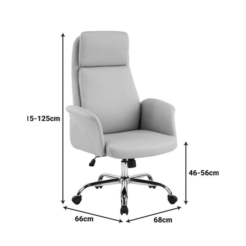 Αν αναζητάς μια επαγγελματική καρέκλα, που να συνδυάζει την άνεση, το κομψό στυλ, με την τεχνολογία και την εργονομία τότε η καρέκλα γραφείου Derjio είναι για εσένα. Κατασκευασμένη από υψηλής ποιότητας υλικά, προσφέρει απαλή αίσθηση και αντοχή στο χρόνο. Ο ειδικός σχεδιασμός της υποστηρίζει την πλάτη και τον αυχένα, εξασφαλίζοντας παραγωγικές ώρες εργασίας. Τεχνικές προδιαγραφές: Μηχανισμός Tilt / Ανακλινόμενη πλάτη: Το κάθισμα ακολουθεί την κλίση του σώματος μπρος – πίσω, προσφέροντας πλήρη ελευθερία κινήσεων, αλλά και εργονομική στήριξη της μέσης και της σπονδυλικής στήλης. Ο μηχανισμός μπορεί να ασφαλίσει στην κάθετη στάση. Ρυθμιζόμενο ύψος: Δυνατότητα να προσαρμόζεται και να “κλειδώνει” το κάθισμα στην κατάλληλη εργονομική θέση, ανάλογα με το ύψος του χρήστη. Σύμφωνα με την εργονομία τα πόδια πρέπει να σχηματίζουν ορθή γωνία 90 μοιρών με το πάτωμα. Ανθεκτικός σκελετός: τροχήλατη πεντακτινωτή βάση χρωμίου υψηλών αντοχών. Δυνατότητα εύκολης περιστροφής και μετακίνησης προς κάθε κατεύθυνση. Τεχνόδερμα Pu: Επένδυση με τεχνόδερμα υψηλής ποιότητας που παρέχει ανθεκτικότητα στον χρόνο αλλά και την δυνατότητα του εύκολου καθαρισμού. Προσφέρεται σε μπεζ χρώμα. Σχεδιασμός ψηλής πλάτης που ακολουθεί την σπονδυλική στήλη για μεγαλύτερη ανατομία. Τα ενισχυμένα μαξιλάρια προσφέρουν μία εξτρά αίσθηση πολυτέλειας. Καμπύλο μπράτσο που ακολουθεί την κλίση των χεριών, ενισχυμένο με τεχνόδερμα για μεγαλύτερη άνεση. Το μπράτσο μπορεί να ανακλιθεί όρθριο,ώστε το κάθισμα να πλησιάζει περισσότερο το γραφείο όταν δεν χρησιμοποιείται. Ενισχυμένη μπουκάλα στήριξης CLASS 3. Διάσταση προϊόντος: Μήκος: 68 εκ Πλάτος: 66 εκ. Ύψος:115-125 εκ. Ελάχιστο ύψος έδρας: 46-56 εκ.