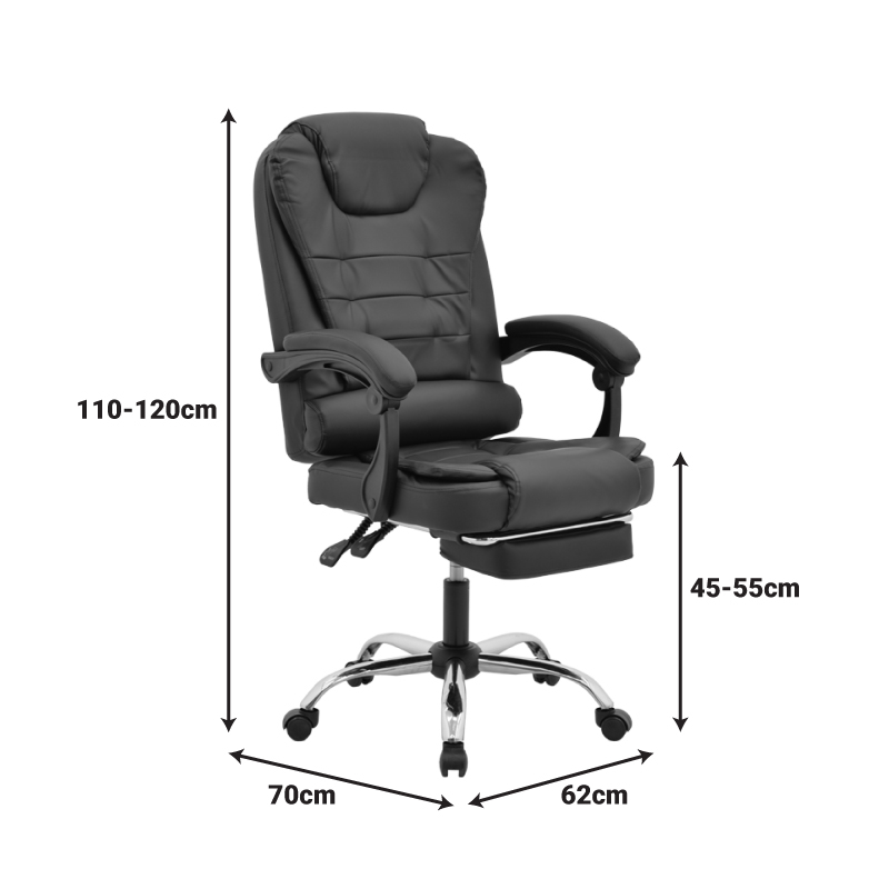 Καρέκλα γραφείου διευθυντή με υποπόδιο και μηχανισμό massage Volter pakoworld pu μαύρο 62x70x110εκ