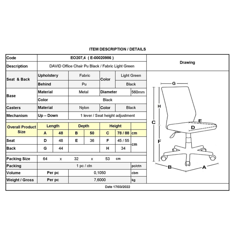 ΕΟ207,4 DAVID Καρέκλα γραφείου PU Μαύρο/Ύφασμα Λαχανί