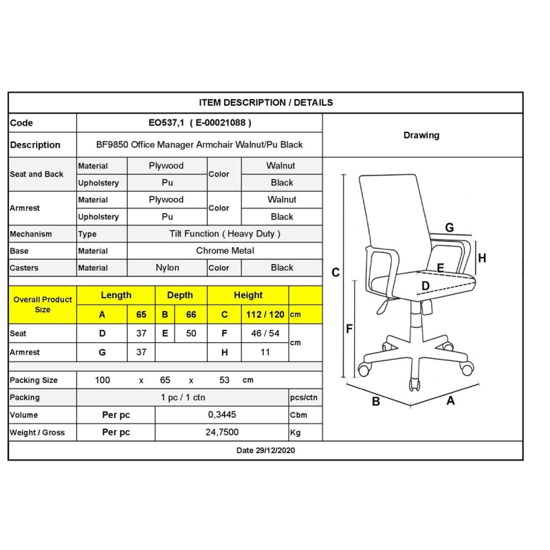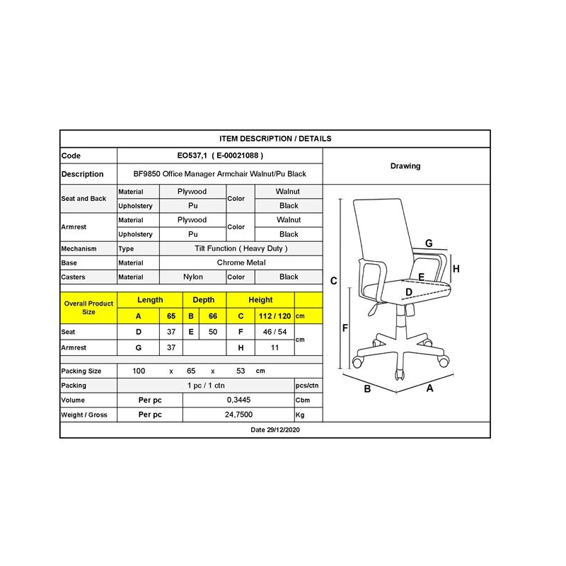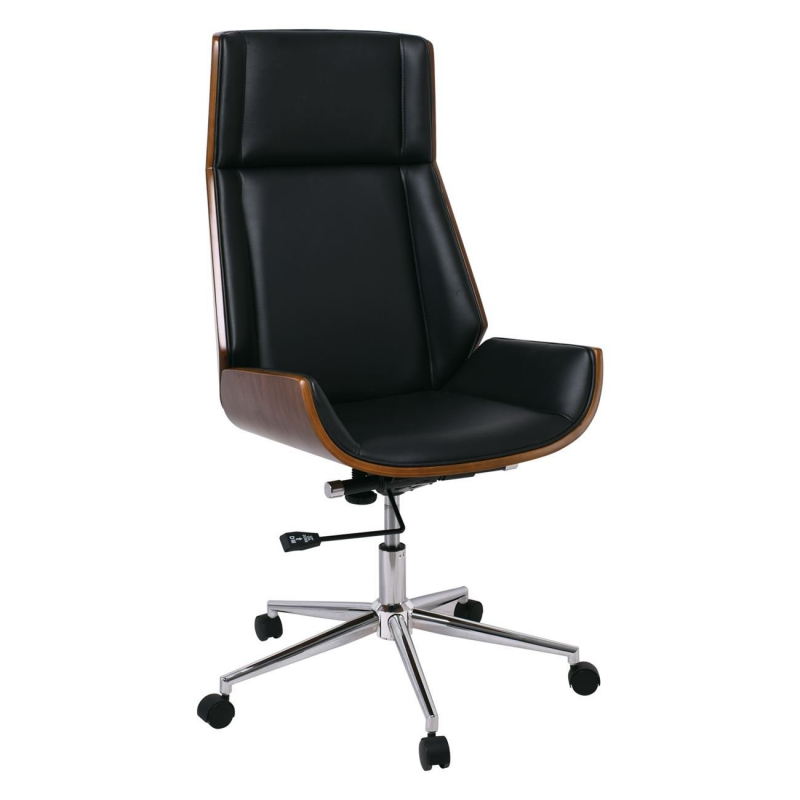 BF9850 Πολυθρόνα Γραφείου Διευθυντή, Μέταλλο Χρώμιο Καρυδί - Pu Μαύρο