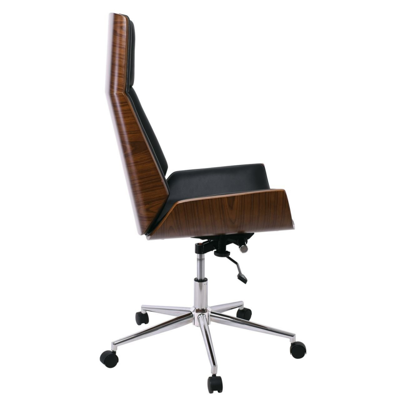 BF9850 Πολυθρόνα Γραφείου Διευθυντή, Μέταλλο Χρώμιο Καρυδί - Pu Μαύρο 65x66x112/120cm