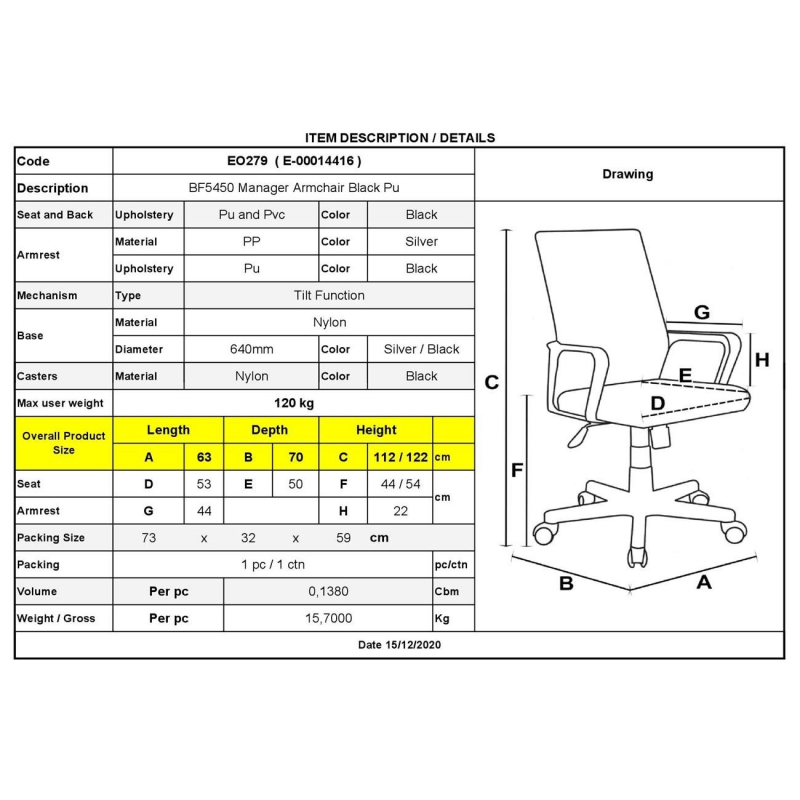 ΕΟ279 BF5450 Πολυθρόνα Διευθυντή Pu Μαύρο