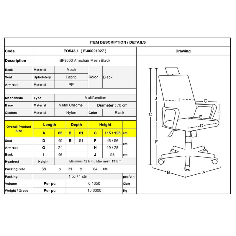ΕΟ543,1 BF9500 Πολυθρόνα Mesh Μαύρο
