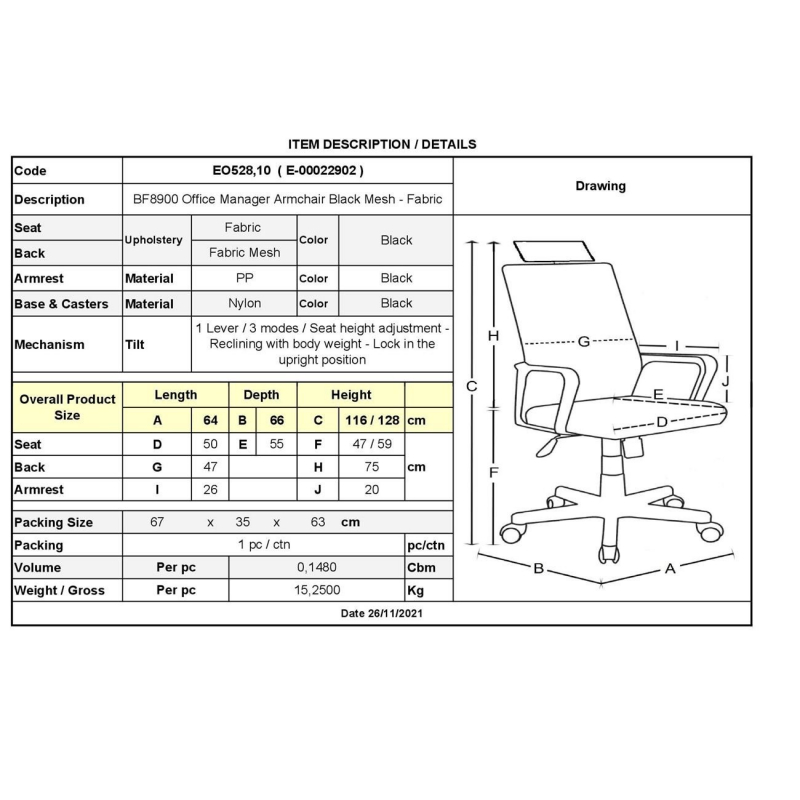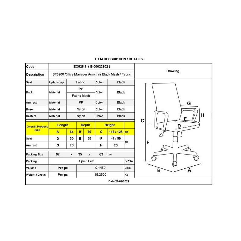 ΕΟ528,10 BF8900 Πολυθρόνα Διευθυντή Mesh-Ύφασμα Μαύρο
