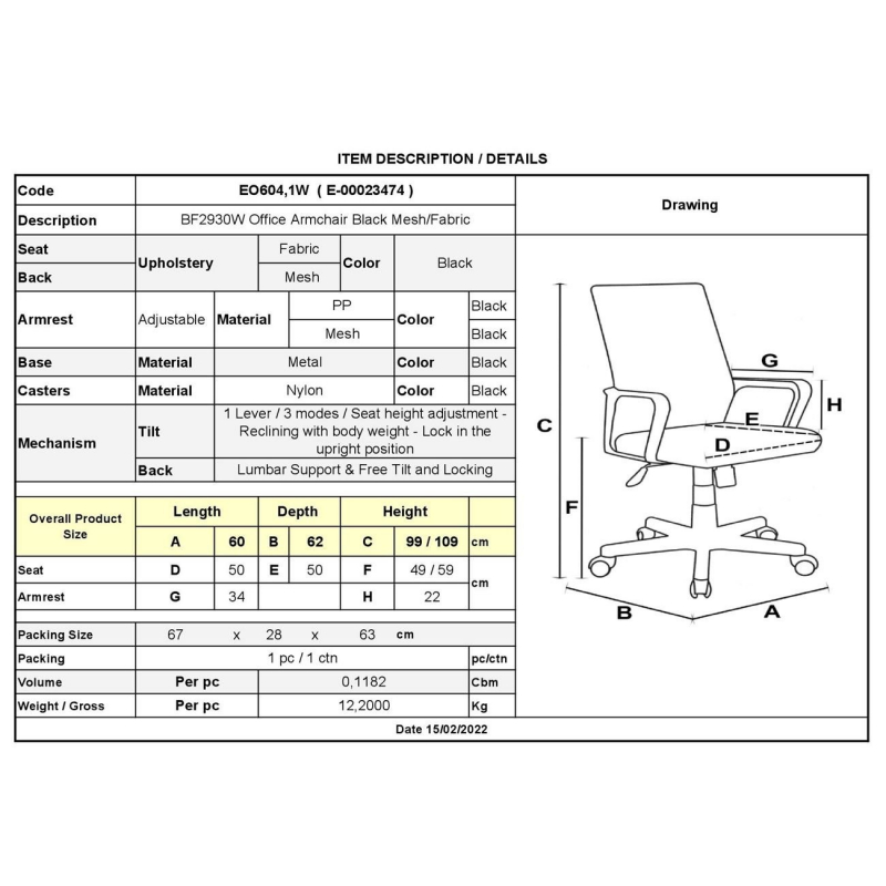 ΕΟ604,1W BF2930W Πολυθρόνα Μαύρο Mesh-Ύφασμα