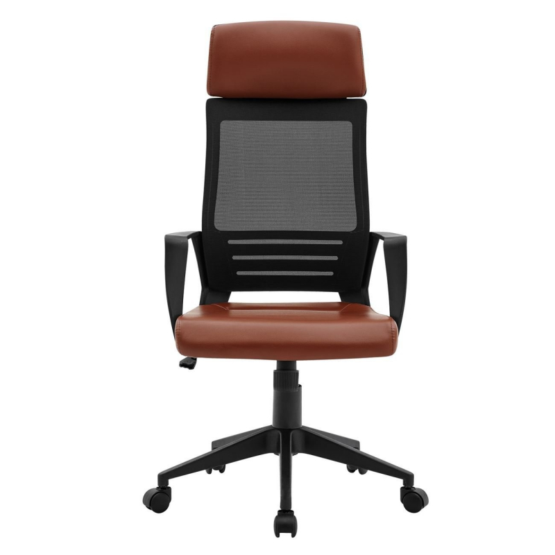 BF2500 Πολυθρόνα Γραφείου Διευθυντή Mesh Μαύρο - Pu Καφέ