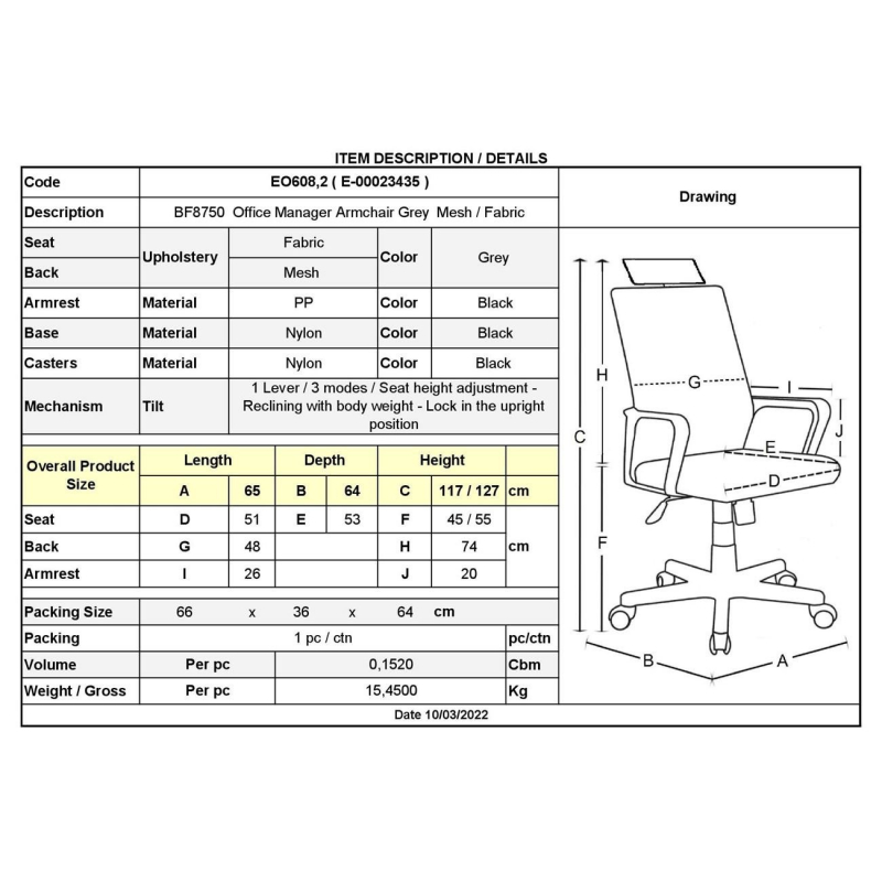 ΕΟ608,2 BF8750 Πολυθρόνα Διευθυντή Mesh-Ύφασμα Γκρι