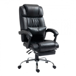 A5250 πολυθρόνα διαχρονική,διευθυντική με ρυθμιζόμενο ύψος που συνδυάζει ψηλή άνετη πλάτη δίνοντας αίσθηση πολυτελείας στο χώρο σας,ενδεδυμένη με μαύρο PU.Διαθέτει επεκτεινόμενο υποπόδιο και μαξιλάρι για την μέση που προσφέρει μεγαλύτερη άνεση και ξεκούραση,σταθερά μπράτσα ενδεδυμένα και πόδι χρωμίου για μεγαλύτερη αντοχή.