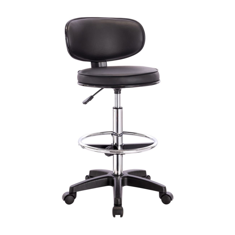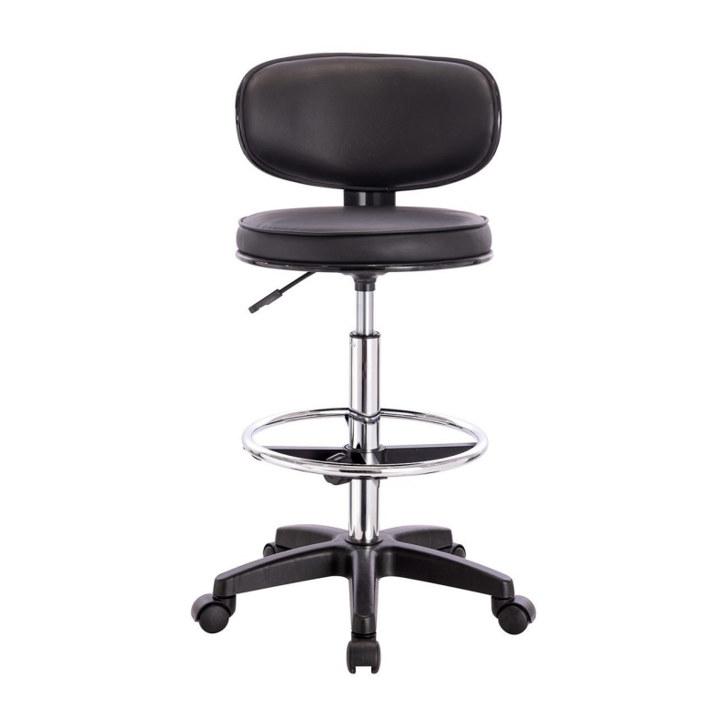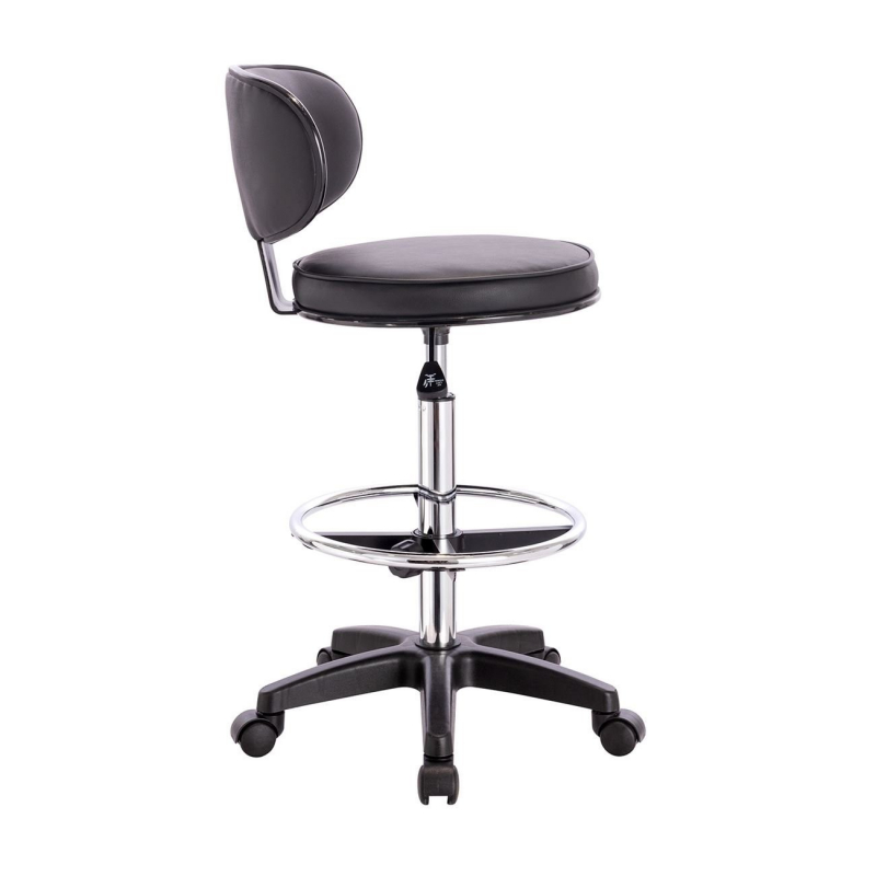 BF406 Σκαμπό Reception-Ταμείου PU Μαύρο, Τροχήλατο, Ρύθμιση Ύψους, Περιστρεφόμενο