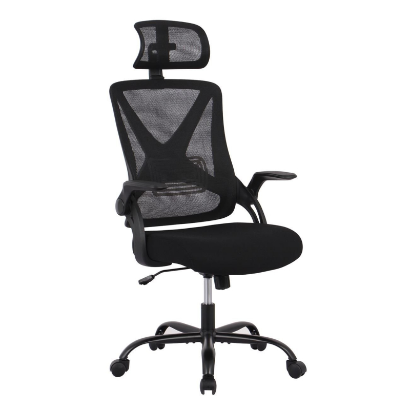 BF2040 Πολυθρόνα Γραφείου Διευθυντή - Ύφασμα & Mesh Μαύρο, Μεταλλική KD βάση 63x65x113/122cm